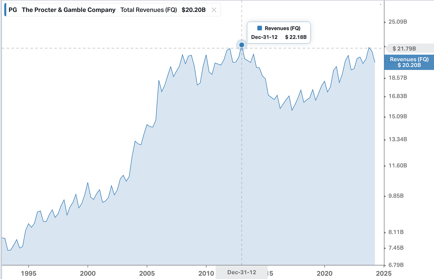 הנוסחא הזו של פרוקטר אנד גמבל, הייתה חלק מהסדר הכלכלי-חברתי הכללי שהתעצב באמריקה בתקופה שלאחר מלחמת העולם השניה. אבל משהו קרה בשנות ה-2010 שערער את הסדר החברתי הזה, ואיתו התערערה גם הצמיחה בהכנסות של פרוקטר אנד גמבל.