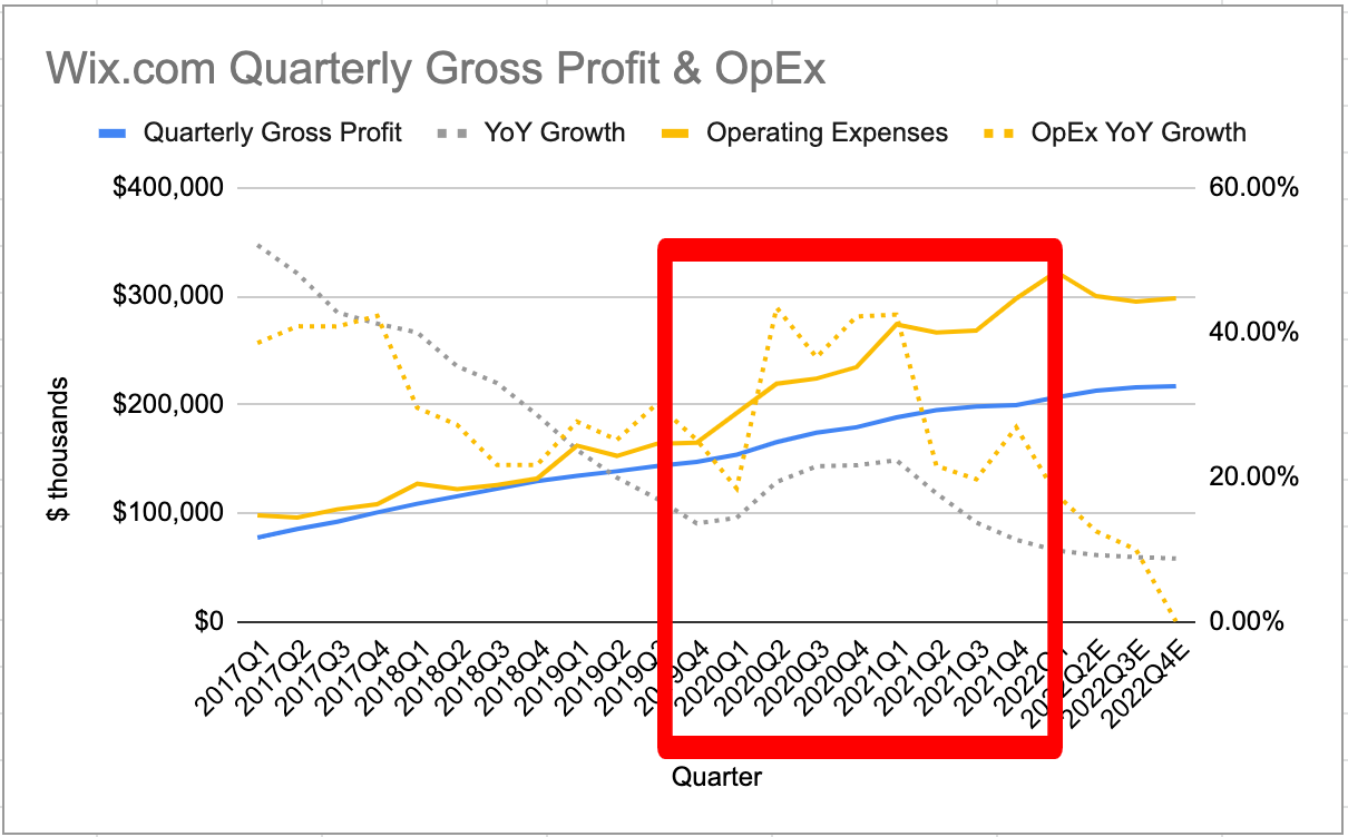 זה בדיוק התרחיש הבעייתי שויטאלי תיאר: החברה הגדילה משמעותית את ההוצאות שלה, הרבה יותר מהר מקצב הצמיחה בהכנסות. קשה לשפוט את ההנהלה על כך, חברות רבות גם עשו אקסטרפולציה של הביקושים המוגדלים עמוק לתוך העתיד. בפוסט קודם הזכרתי את המכתב של טובי לוטקה, מנכ״ל Shopify (שמתחרה באופן מסויים בוויקס), שבאופן גלוי לב הודה שההימור שלו על האצה מתמדת באימוץ של e-commerce לא השתלם. בהרבה מובנים וויקס נחשבים לחברה אגרסיבית יותר מהממוצע (אופן פעולה שאחראי להרבה מההצלחה), אבל במקרה הזה האגרסיביות אולי תתברר בעוכריה של החברה. ההנהלה יצרה מבנה עלויות מנופח בשביל לתפוס הזדמנות פוטנציאלית שבסופו של דבר לא הייתה קיימת בשוק.