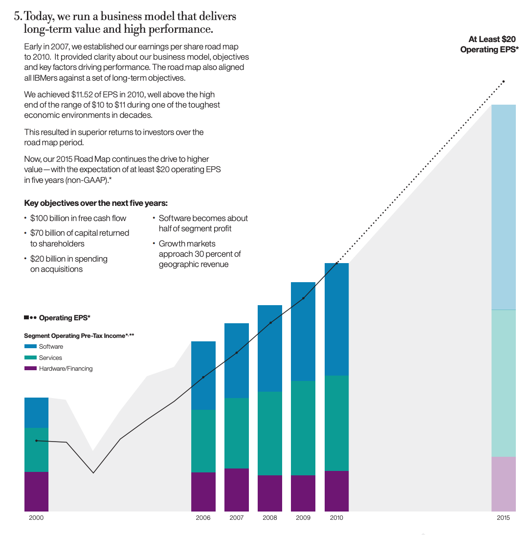 אז מה הייתה התכנית של IBM ל-2015? זה מתוך הדו״ח השנתי ל-2010, שהוביל את באפט לראות את החברה דרך עיניים שונות ולבצע את ההשקעה: