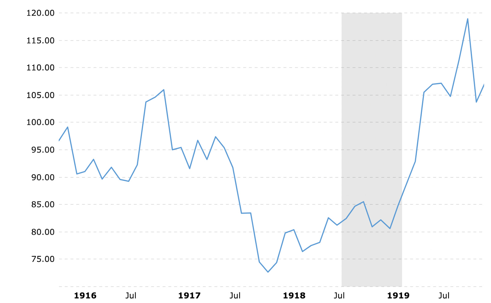 מה קרה בשוק ההון באותו זמן? מדד הדאו ג׳ונס עלה ב-45% מתחילת 1919 ועד לשיא בתחילת נובמבר (שהיה מעל השיא הקודם של סוף 1916). את השנה הוא סיים בעליה של מעל 30%.