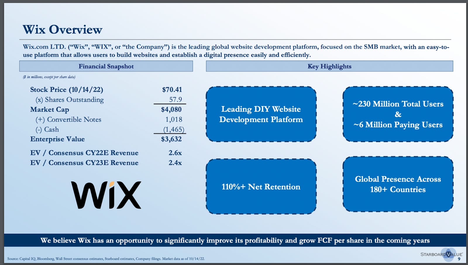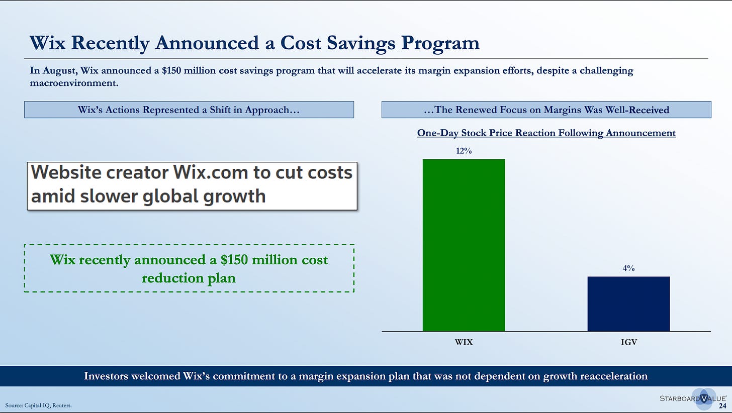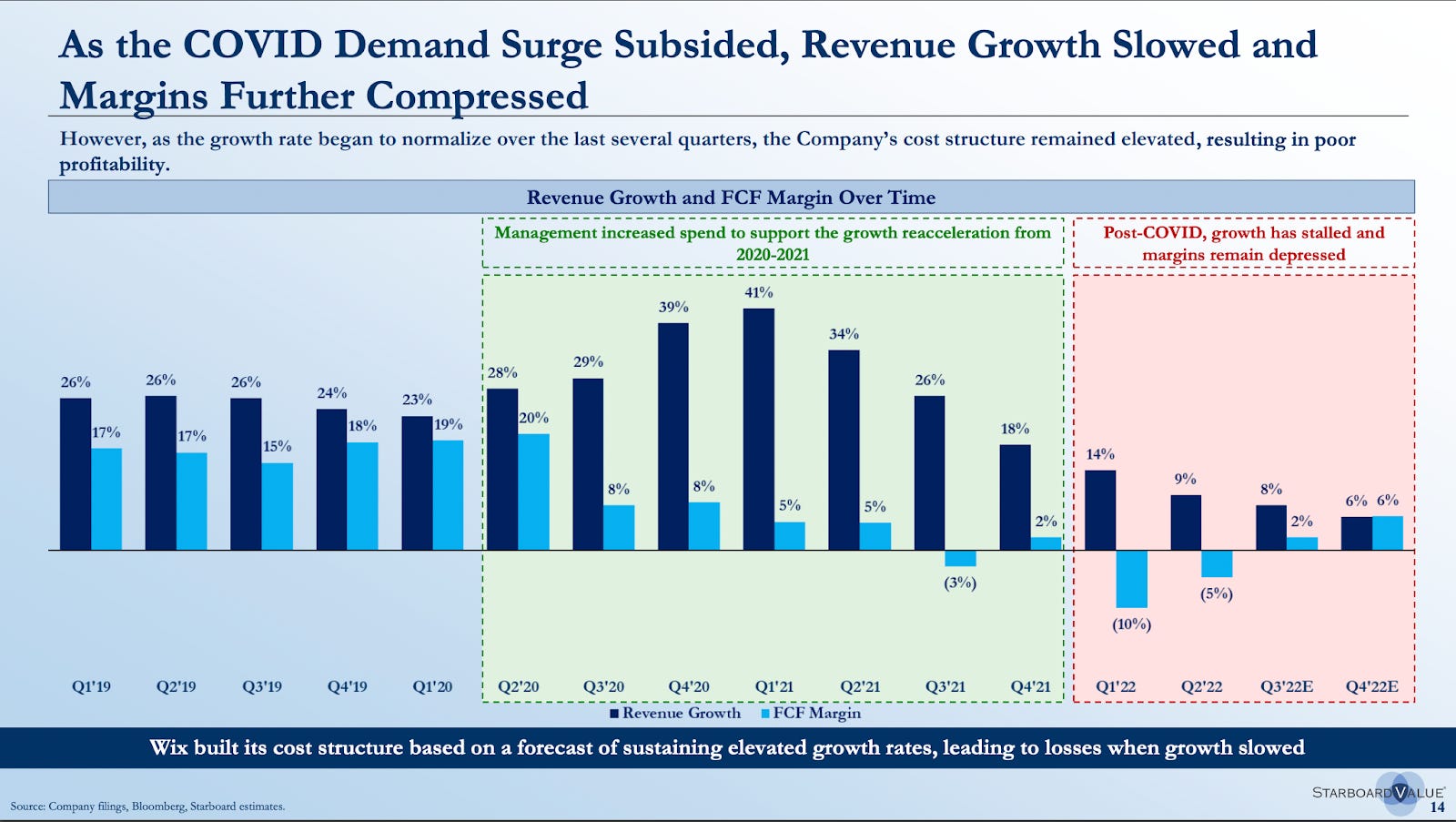 סטארבורד תיארו את וויקס כחברה עם מודל עסקי אטרקטיבי, שהגדילה מאד את מבנה ההוצאות שלה לאור הצמיחה המהירה שחוו במהלך קוביד. כל זה רק כדי להתנגש במציאות של האטה חדה בקצב הצמיחה, שבשילוב עם ההוצאות הגבוהות פגעו מאד ברווחיות של החברה.