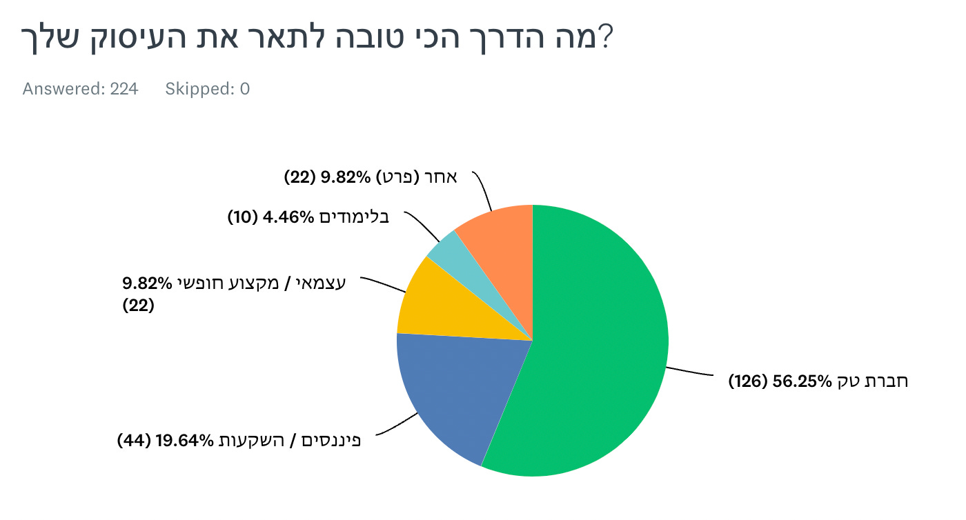 שישי שמח! לפני המהדורה, רציתי לשתף בכמה תוצאות של סקר הקוראים. באופן לא מפתיע, הרוב המוחלט של הקוראים עובד בחברת טק, והקבוצה הבאה עובדים בהשקעות או פיננסים. מצד שני, כמעט רבע ממי שמילאו את הסקר לא עובדים באחד המקצועות האלה, והקבוצה הזו אולי אפילו יותר גדולה בקרב כלל הקוראים. זו נקודה שאקפיד לזכור בעתיד, ואשמח לפידבק שלכם אם אתם מרגישים לפעמים שהבלוג לא פונה גם אליכם (כמו שאולי גרמתי להרגיש מהאופן שבו נבנו השאלות הראשונות בסקר).